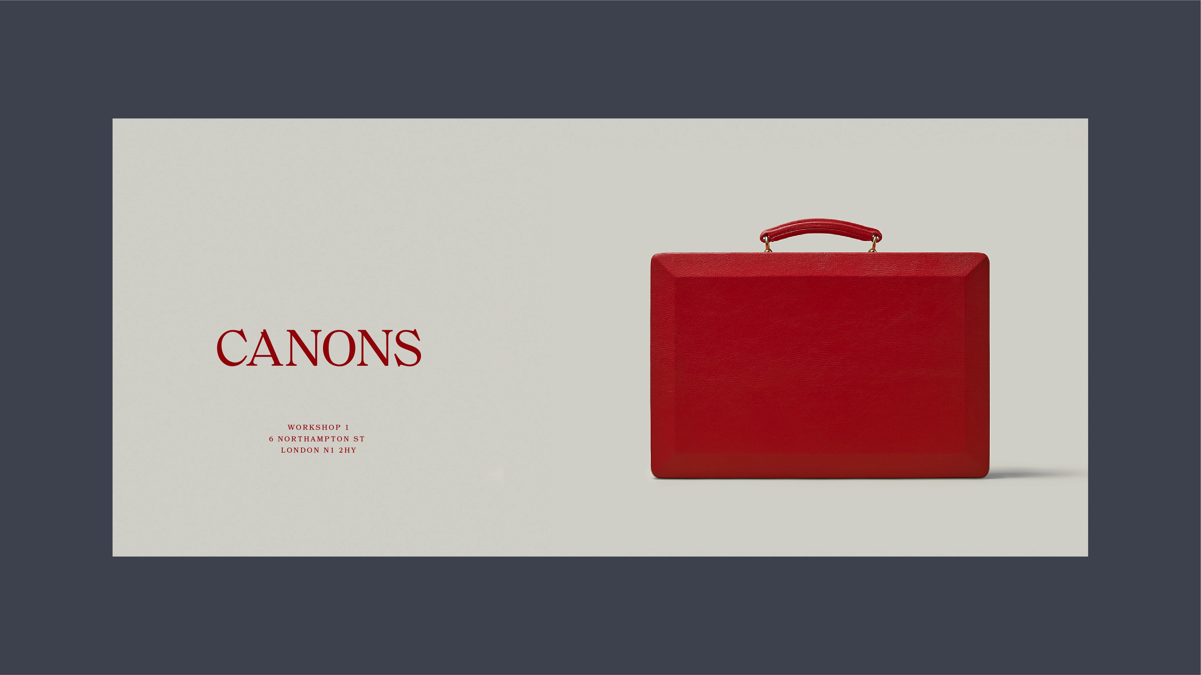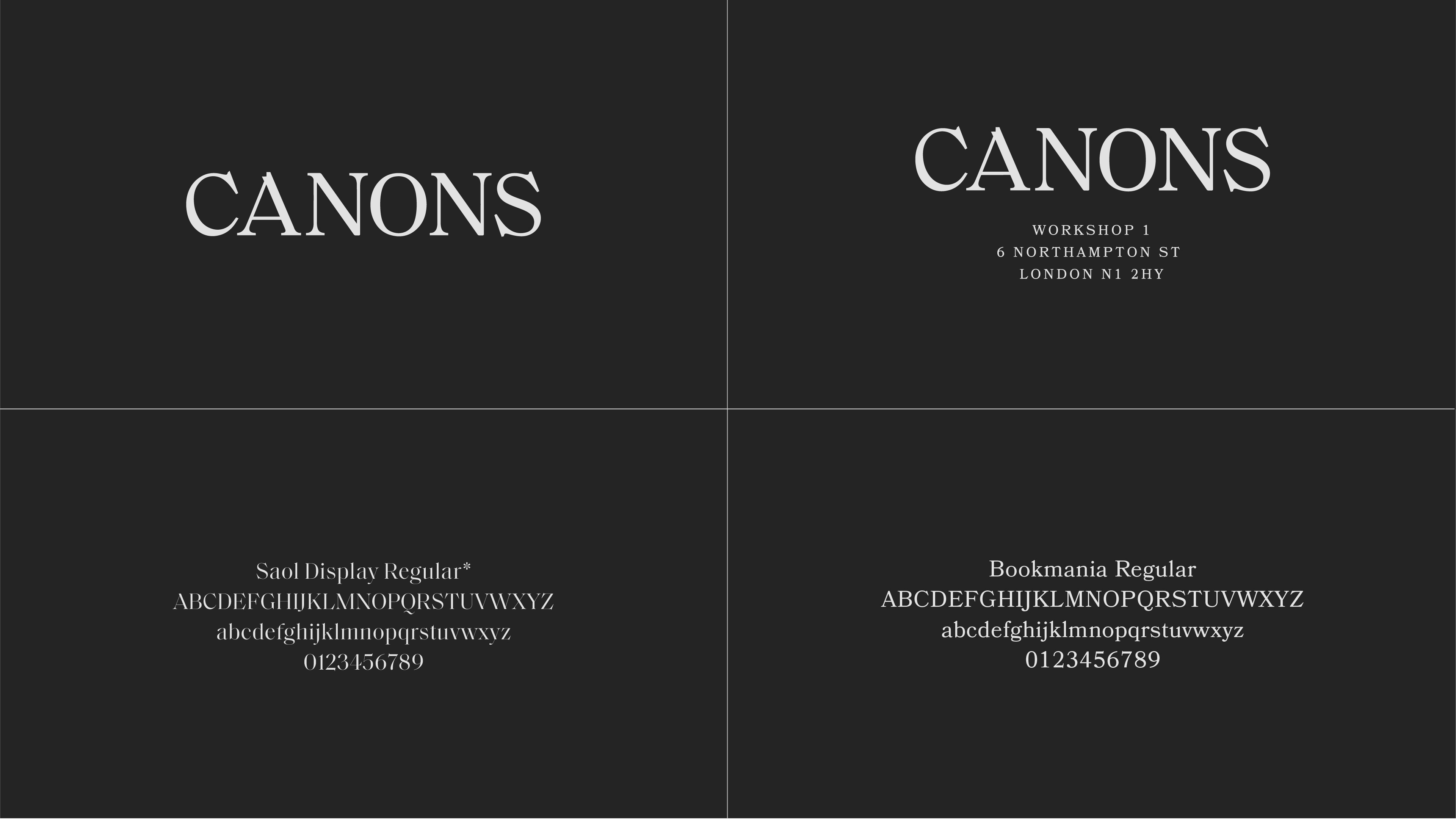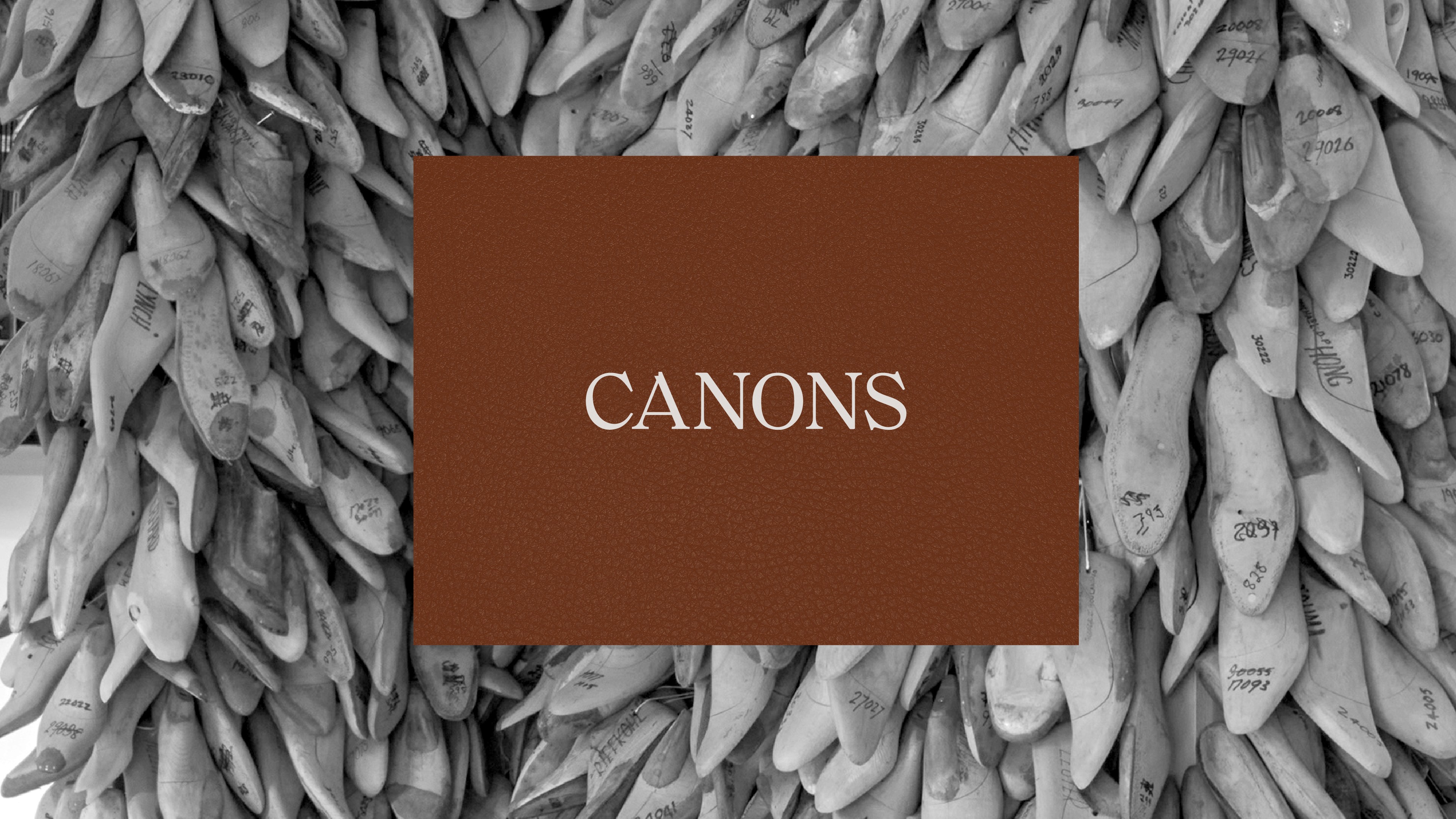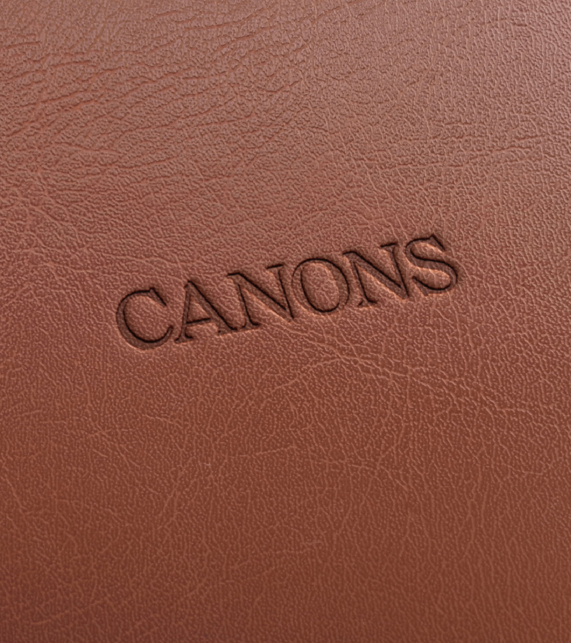 A refreshed visual identity was created to mirror Canons’ commitment to craft and quality. I developed a refined wordmark, with letterform details informed by the angles and edges of bookmaking tools with an accompanying secondary typeface, drawing inspiration from old deboss and stamp textures. The project’s colour pallete takes inspiration from the variety found in new and worn leather swatches.